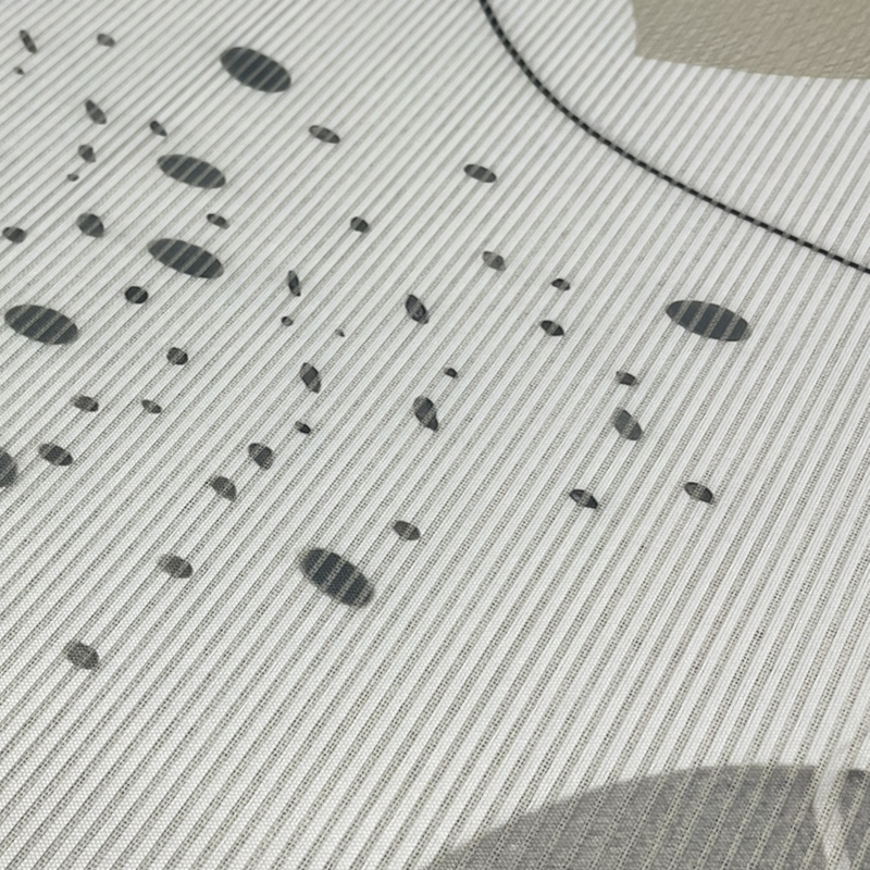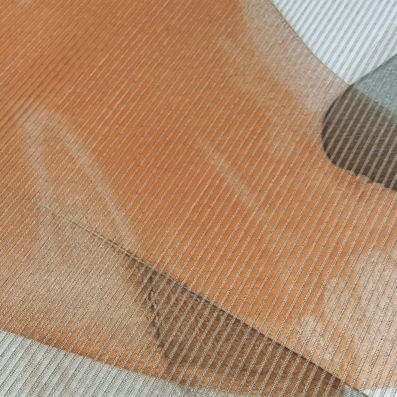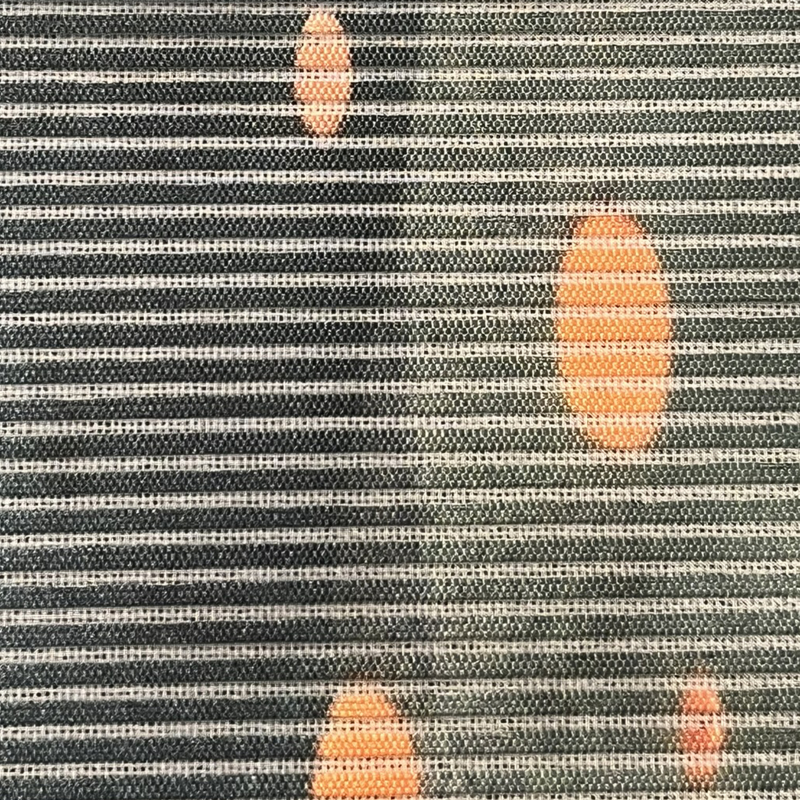 poloprůhledná dekorační látka s bambusovou optikou (příčně tkaná vlákna - quereffekt), digitálním potiskem