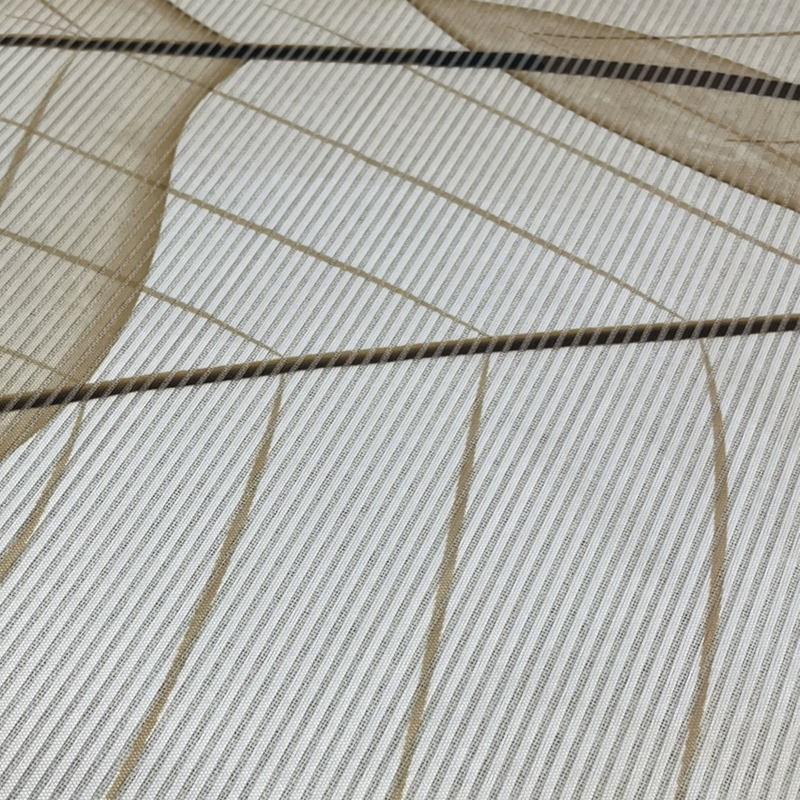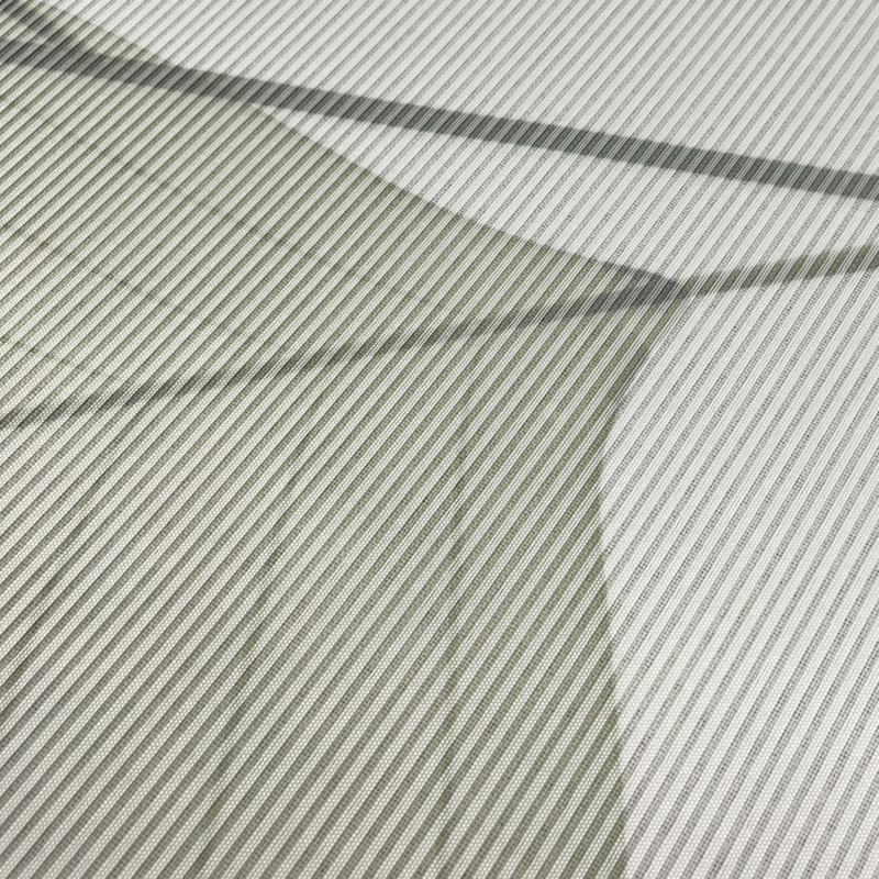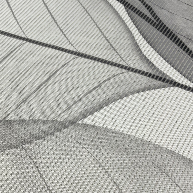 poloprůhledná dekorační látka s bambusovou optikou (příčně tkaná vlákna - quereffekt), digitálním potiskem