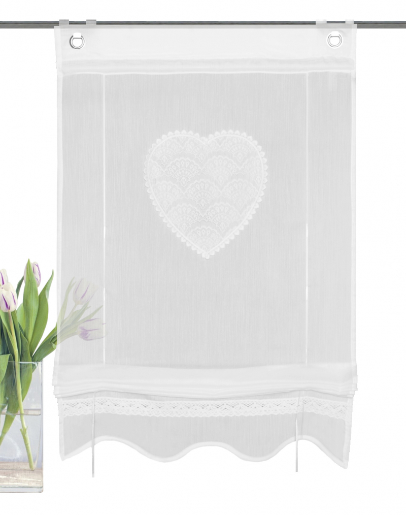 poloprůhledná roleta z batistu s výšivkou, v spodní části s krajkou