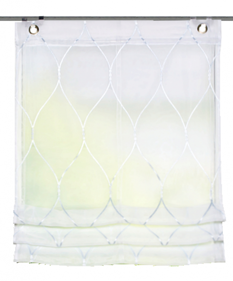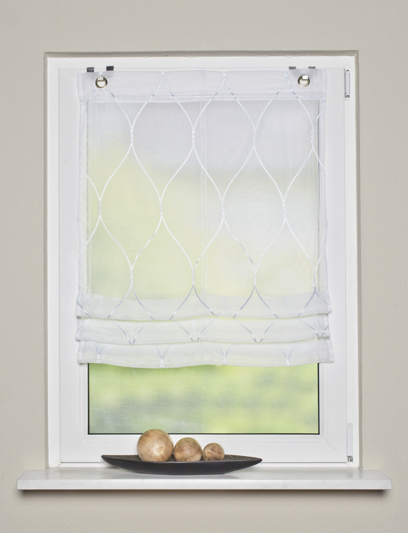 elegantní římská roleta vyrobená z průhledného voálu s výšivkou