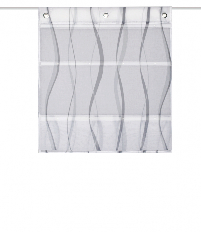 roleta záclonová část s všitými kovovými oky pro zavěšení na okenní háky (jsou součástí balení)
