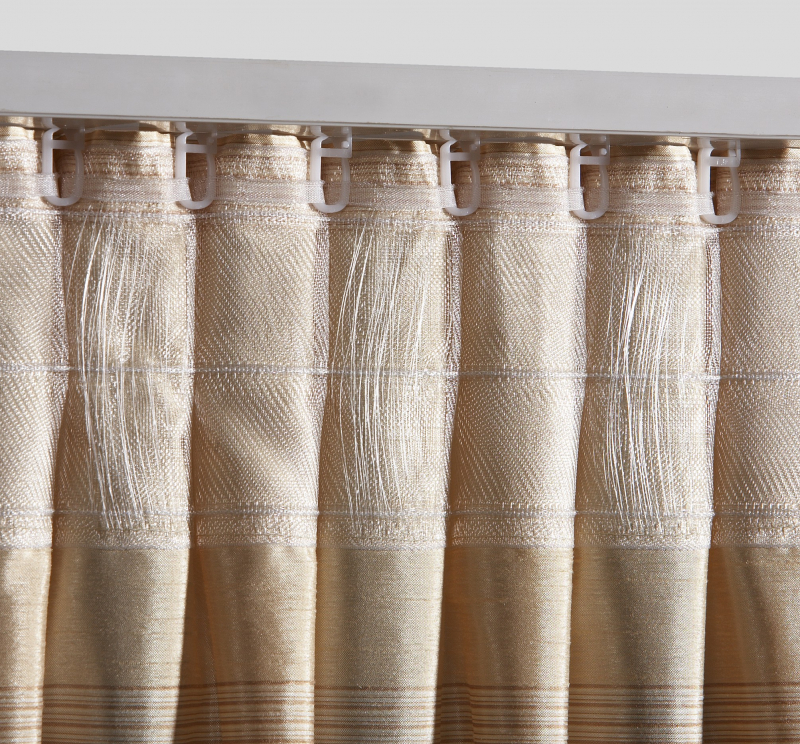 pokud chcete závěs zavěsit do namontované stropní kolejničky - našitá multifunkční řasící stuha to prostředníctvím jezdců (ty nejsou součástí balení) umožňuje
